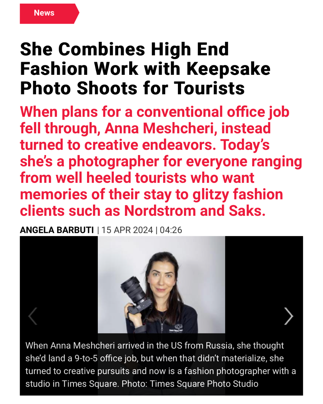 “She Combines High End Fashion Work with Keepsake Photo Shoots for Tourists”
